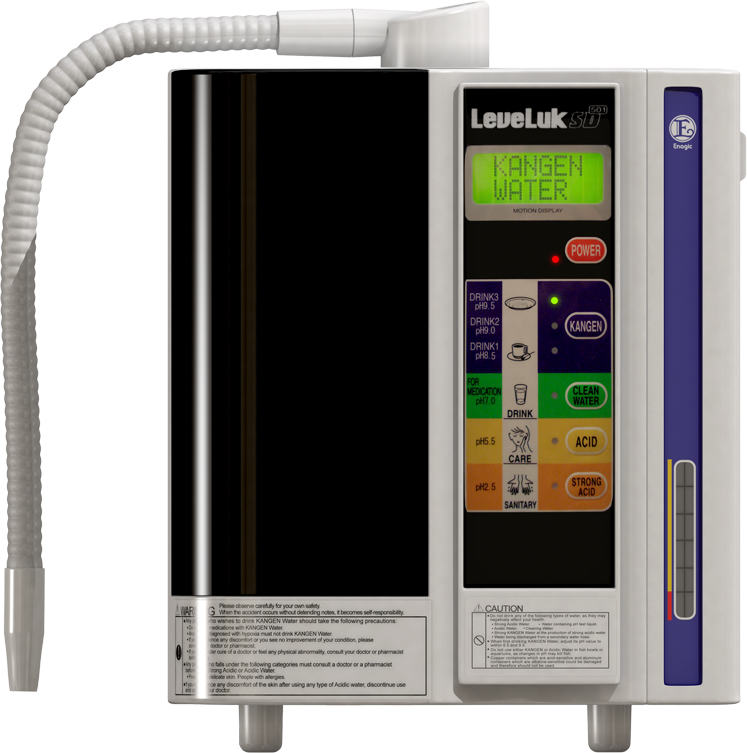 The continuous ionized electrolysis water generator system. Fully-equipped with a built-in electrolysis chamber featuring a large LCD panel, clear voice prompts, and seven platinum-coated titanium plates.